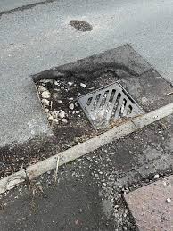 Take photos of the hazard (plates, patches, uneven lanes, missing signage).